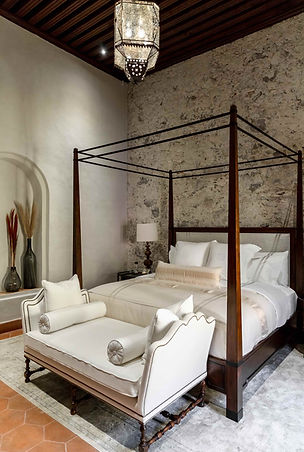 El mayor privilegio de la Correo Suite son sus dos balcones privados. A través de sus hermosas puertas de madera tallada, la luz natural inunda la habitación, permitiéndole contemplar la vida del pueblo mágico. En el interior, los muros de piedra originales han sido preservados cuidadosamente, creando un contraste visual fascinante con la elegante cama King Size de diseño limpio y contemporáneo.